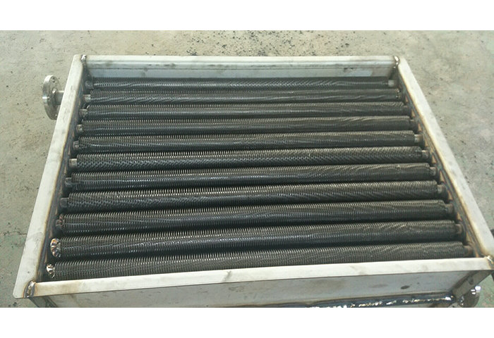 2.SRZ空气换热器主要由顺空气流向的三排散热管束组成,叉排排列,SRZ散热器翅片管均用Ф22× 2mm无缝钢管绕制上16×0.5mm皱折钢带而成,呈螺旋状,SRZ钢制散热器片距有5mm-大“D”,6mm-中“Z”、8mm-小“X” 三类,共三十八种规格;